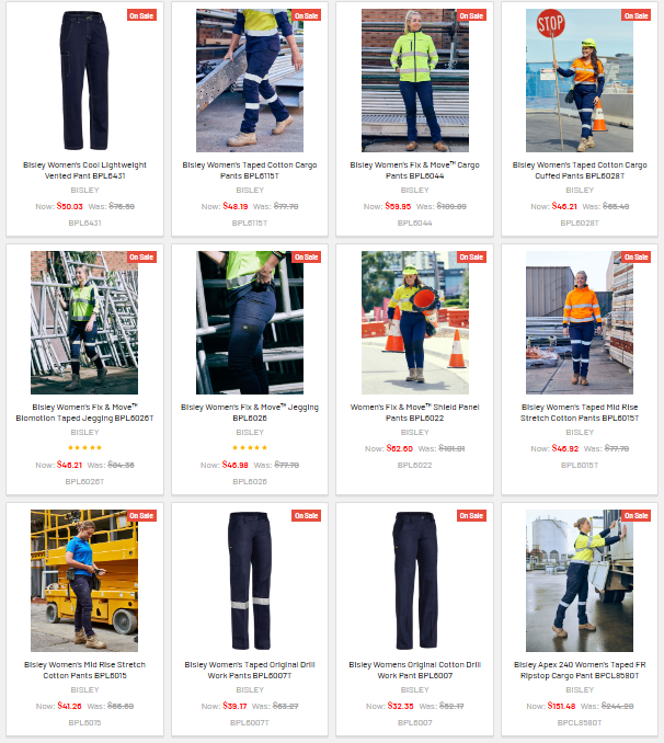 The womens workwear pants range at Boots & Workwear Australia includes:
